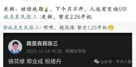 起初网传《镜花缘》和《五福临门》是同期开机的,所以这才有了祝绪丹必须二选一的问题。