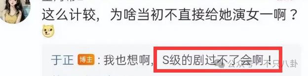 当时于正也阴阳怪气地提到过,S 级的剧平台不认祝绪丹 ……