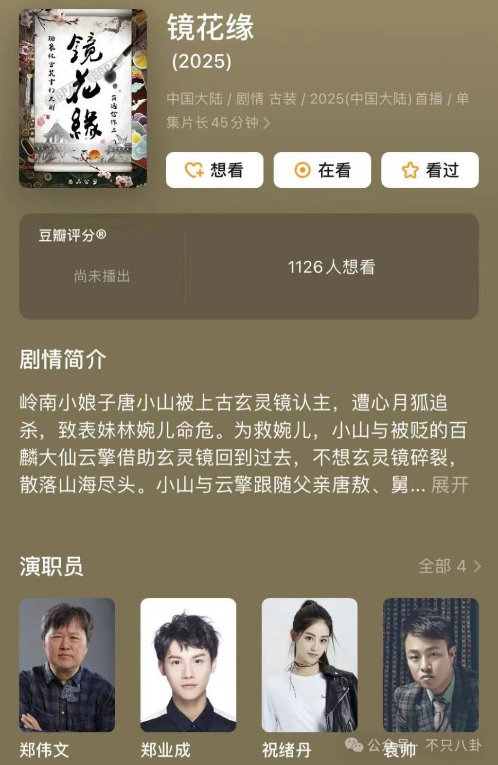 还有一部终于看上去有热播迹象的言情古偶《流光引》,搭档男主却是张翰 …… 这部剧 2025 年就说要播,但视频平台上至今查无此剧。