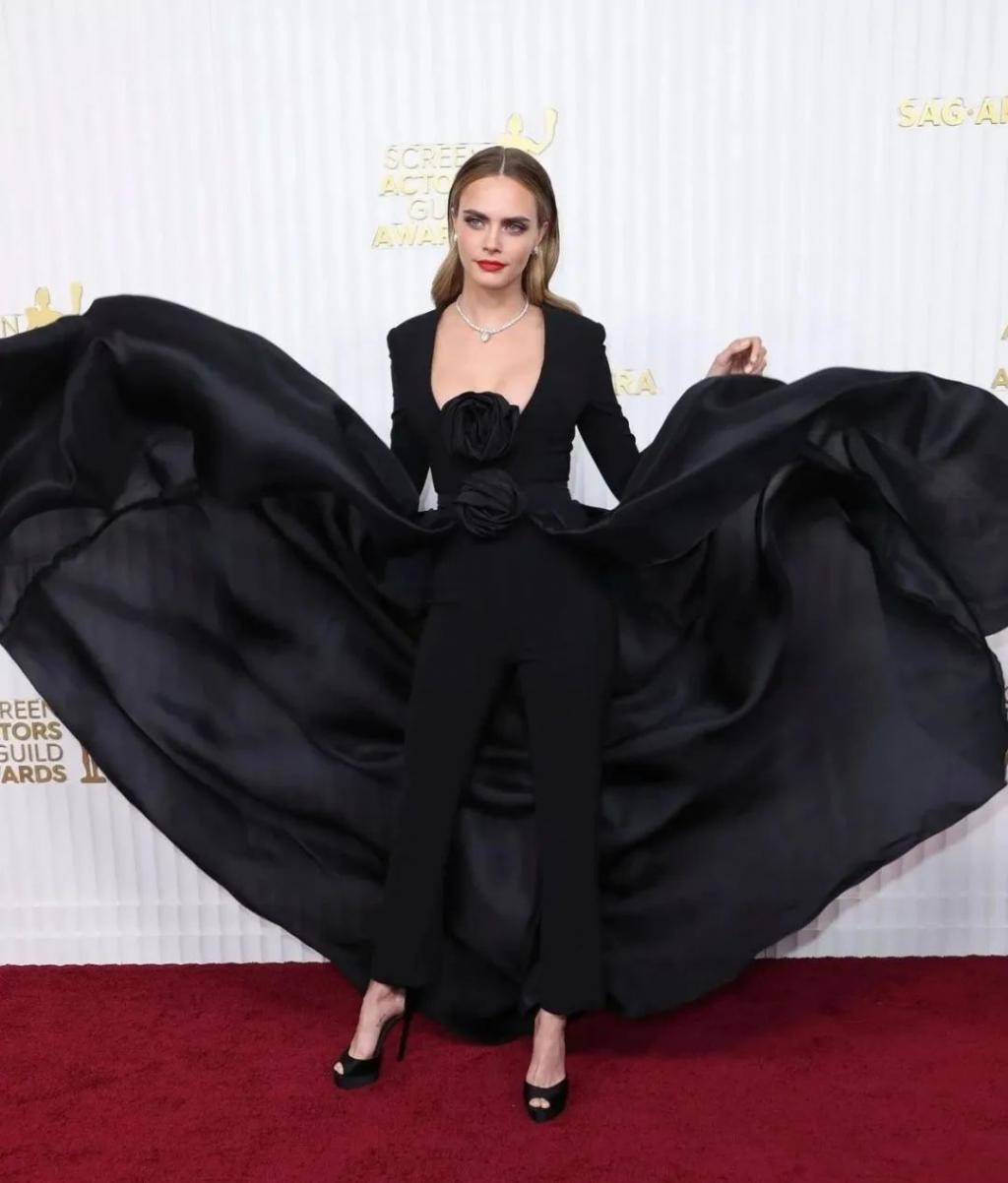 许久未见的卡拉 · 迪瓦伊带来惊喜的红毯表现。去掉秀场上的繁琐花朵装饰,是更适合电影红毯的优雅调整。