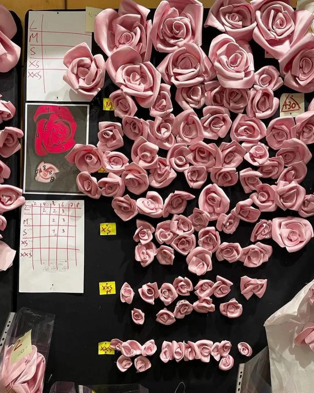 来自 Valentino 的定制玫瑰礼服带来春意盎然的浪漫体验,礼服上装饰着的 190 朵玫瑰,每朵平均需要 5 小时才能制作完成。这件礼服前后共有 42 名工匠参与制作,耗时 1230 小时,相当重工。