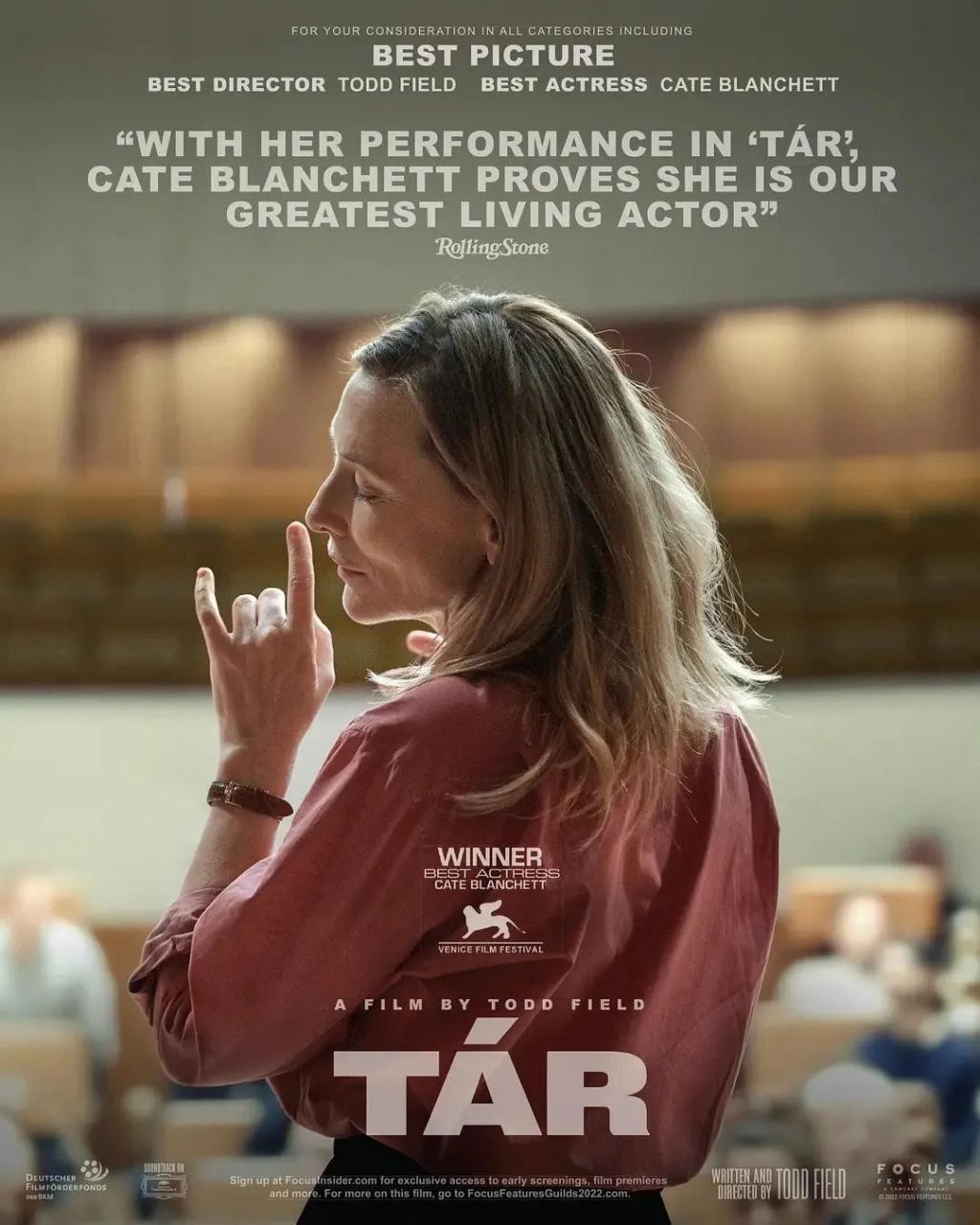 《瞬息全宇宙》想必大家很了解了,但凯特 · 布兰切特参选的影片《塔尔》胜算也不小。