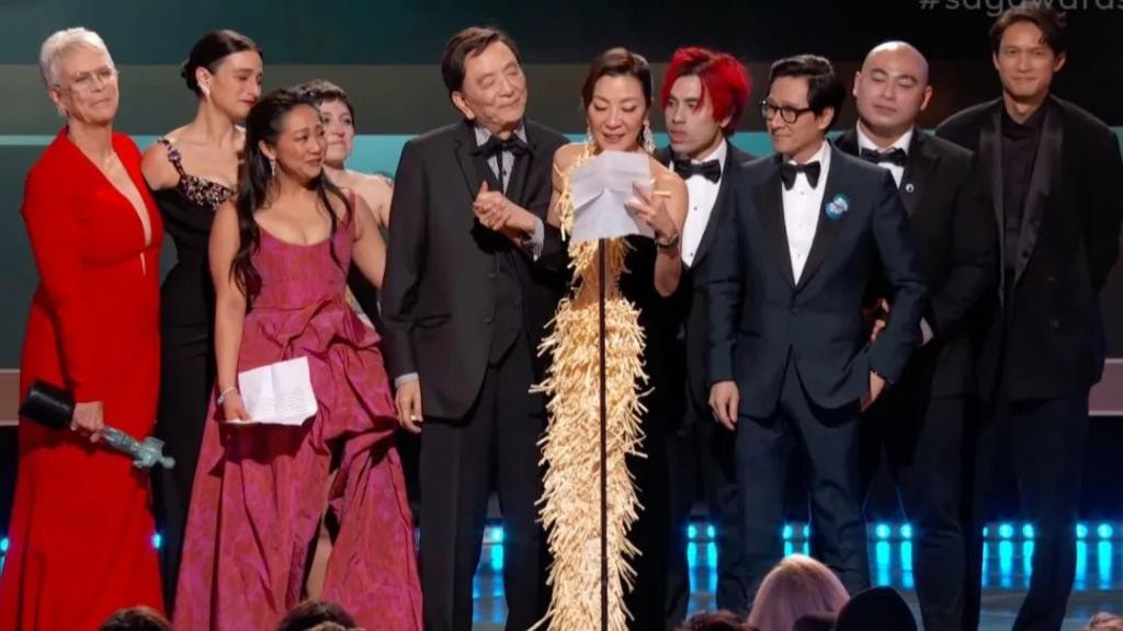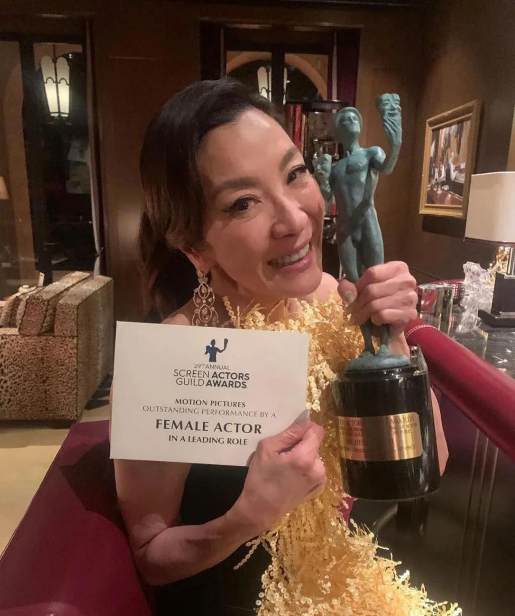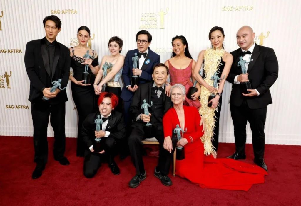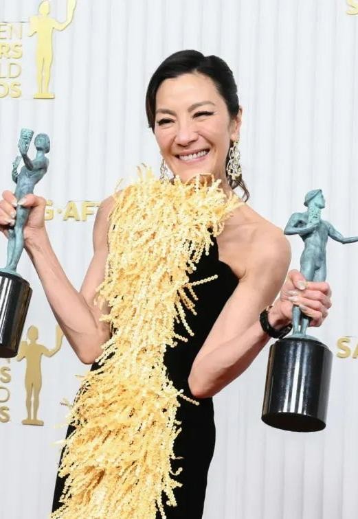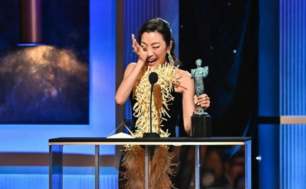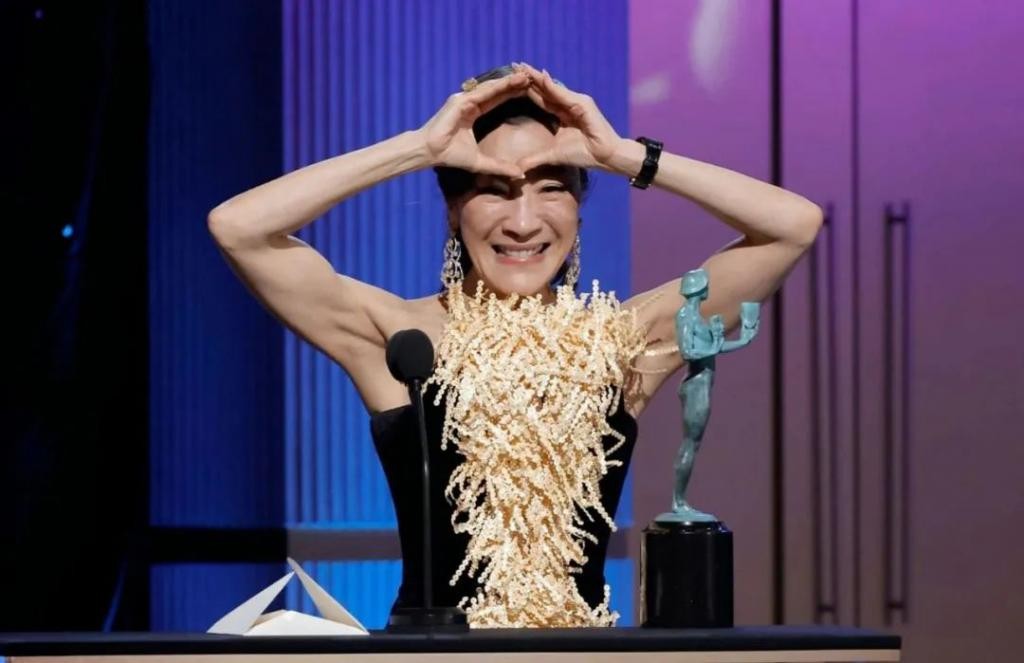 杨紫琼凭借《瞬息全宇宙》获得美国演员工会奖,该片还拿下了 SAG 四大奖项(最佳女主角、最佳男配角、最佳女配角、最佳群戏),也是奖项历史上首部获得 3 项角色表演奖、获奖数量最高的影片。