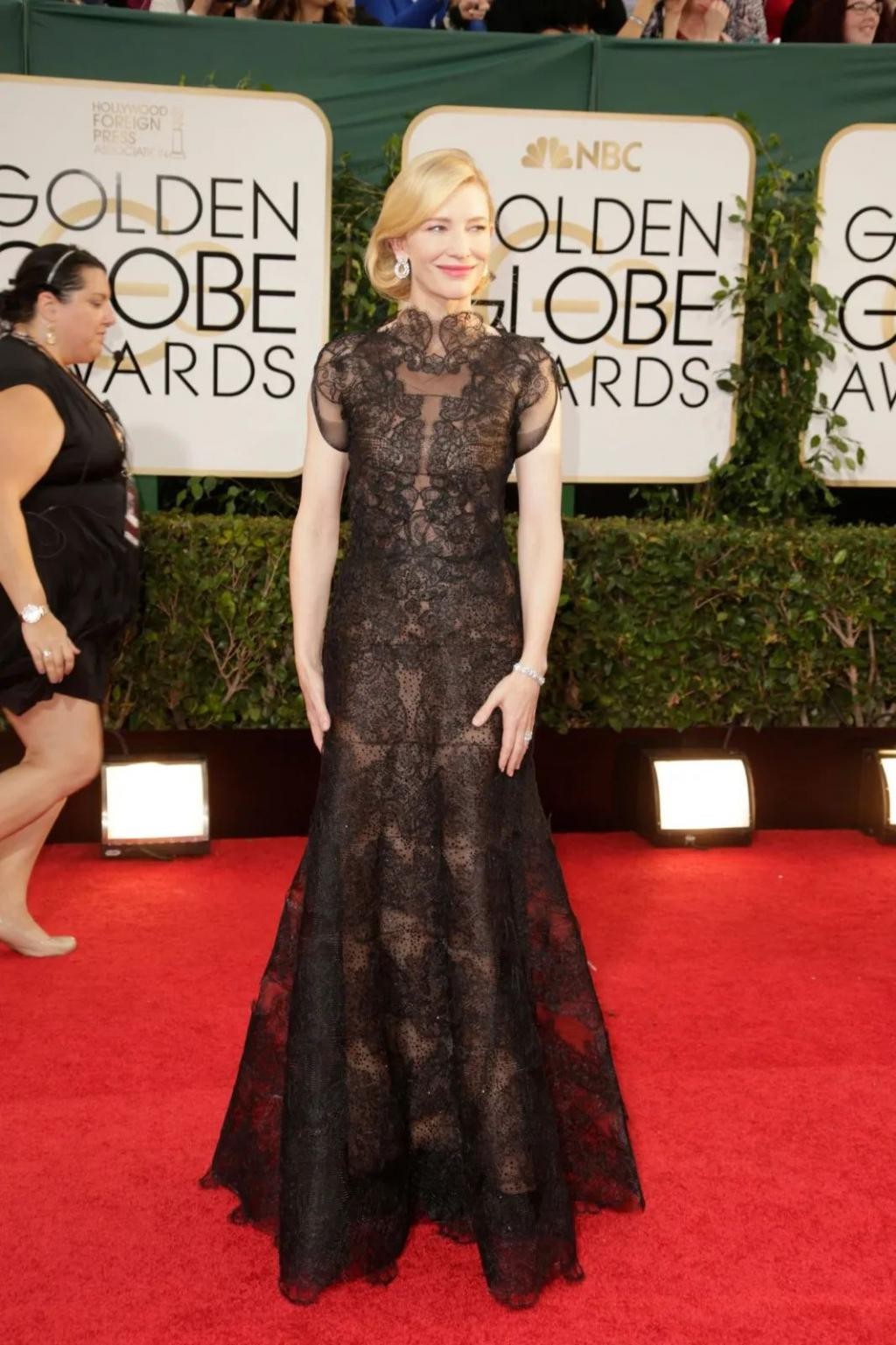 凯特 · 布兰切特的礼服很有挑战性,来自曾在 2014 年金球奖红毯上演绎过的旧礼服改造。