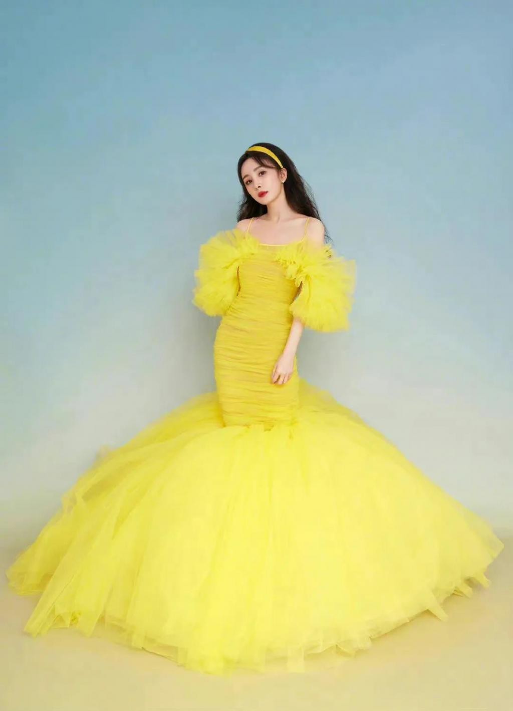 可能有些人会觉得这条礼服略有些眼熟,没错,杨幂去年的生日照穿的正是这件啦!