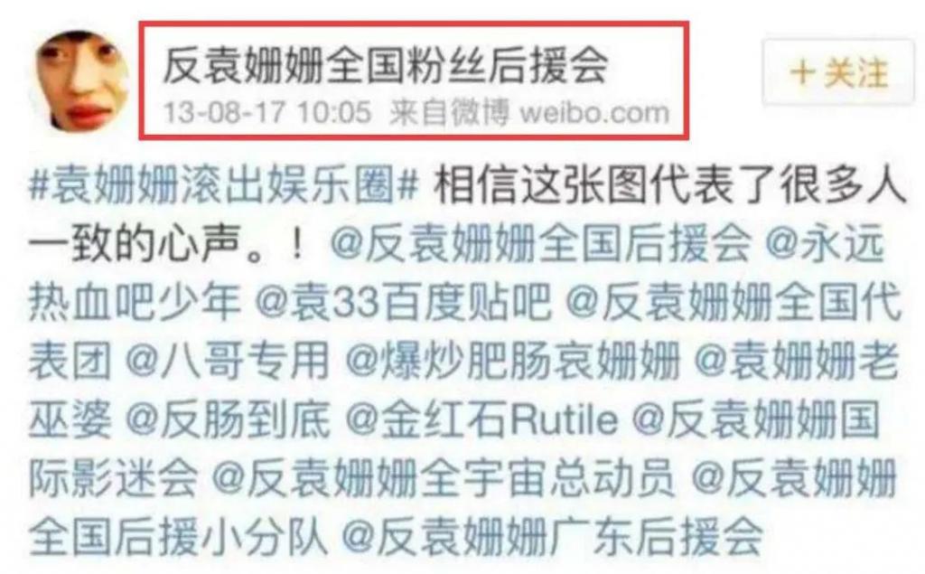 希望她 " 滚出娱乐圈 " 的声音始终高涨热烈,相关的后援会都有好几个。