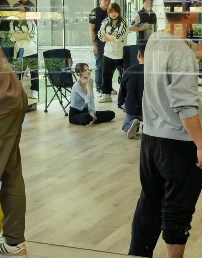 从博主回传的照片可见,当时陈妍希穿着休闲服饰露面,她正坐在地板上与导演等人讨论戏份,周边全是工作人员,服务相当到位。