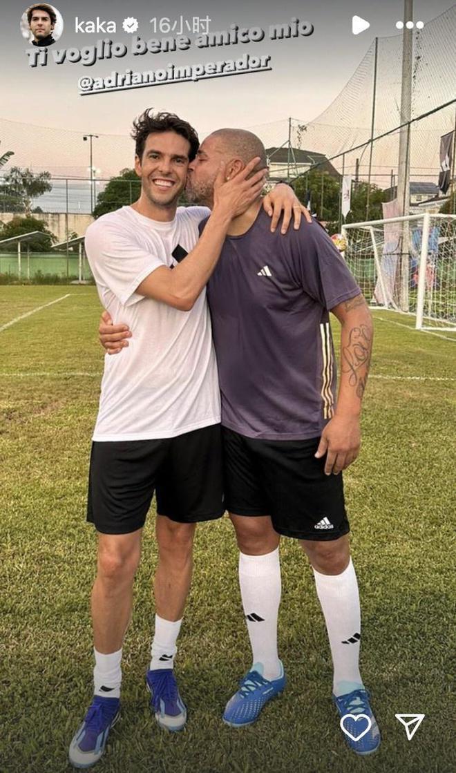 卡卡晒出阿德里亚诺贴面亲吻他的照片,配文:我爱你,我的朋友。