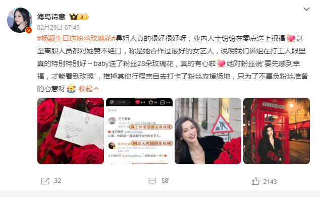 让我们把时间线拉回到四年一遇的日子,2 月 29 日,这天,树看到了一条杨颖女士庆生的微博,