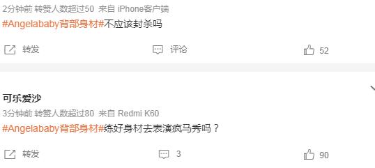 如今,霸气归来的鼻姐也立马安排了一个 "Angelababy 背部身材 " 的词条,还冲到了热搜第二的位置。