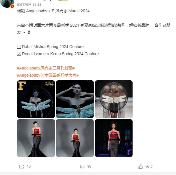 就开启了三四个热搜,包括但不限于," 上杂志封面了 "" 穿高定了 "" 三套高定 "