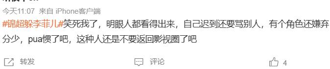 锦超不想在别人剧组跟前和她吵吵,李菲儿不依不饶,还不让人家躲她。