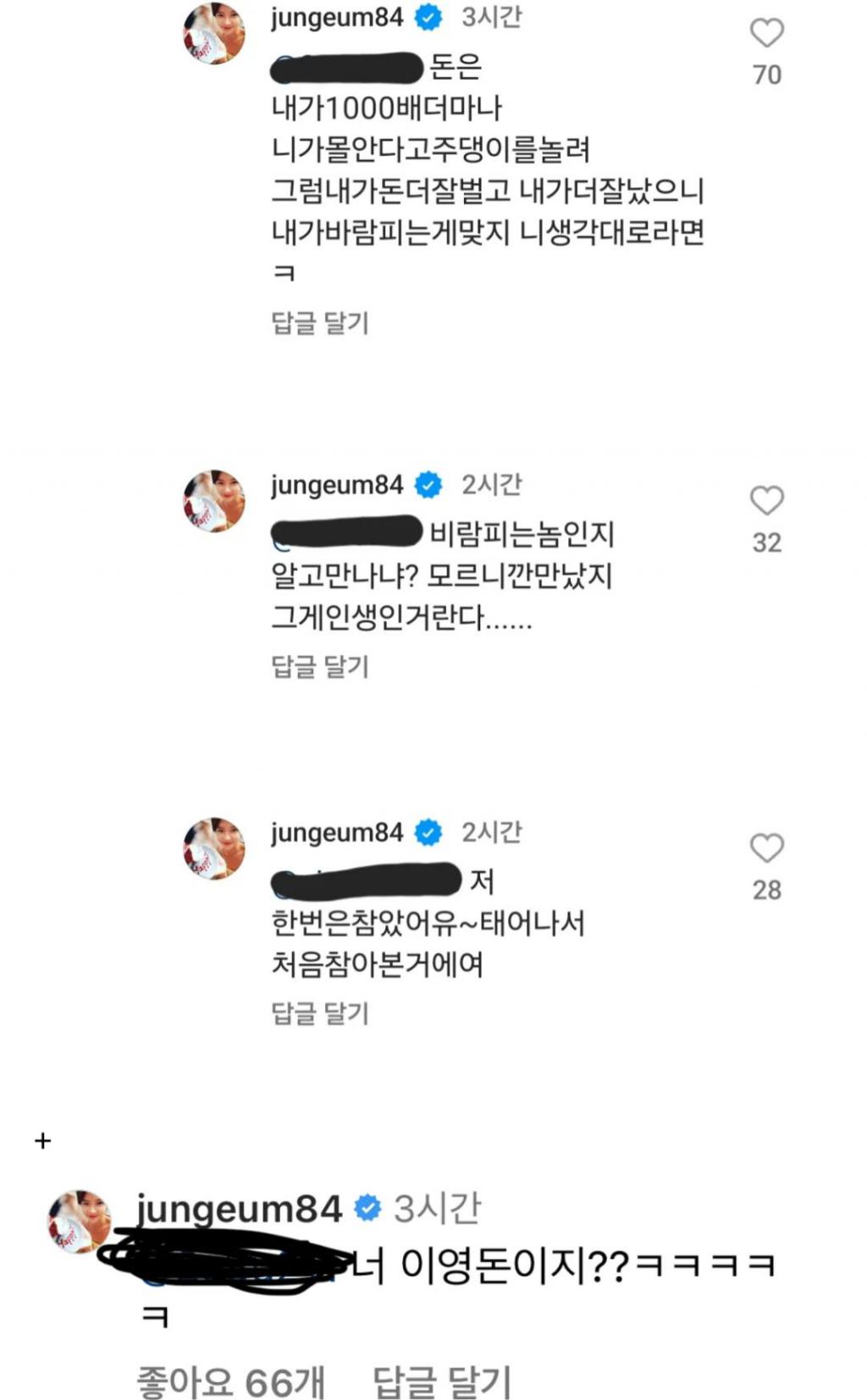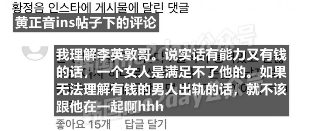 面对有网友发表 " 有钱的男人就该出轨 " 的言论,黄正音也直接在评论区霸气摊牌回怼: