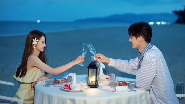 只见他们一会牵着手在沙滩上深情对视,一会又坐在海边享受浪漫的烛光晚餐,画面非常唯美。