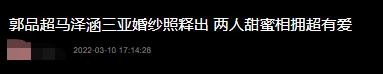 照片曝光后,网友们纷纷送来了祝福,夸赞郭品超和女友郎才女貌,特别般配。