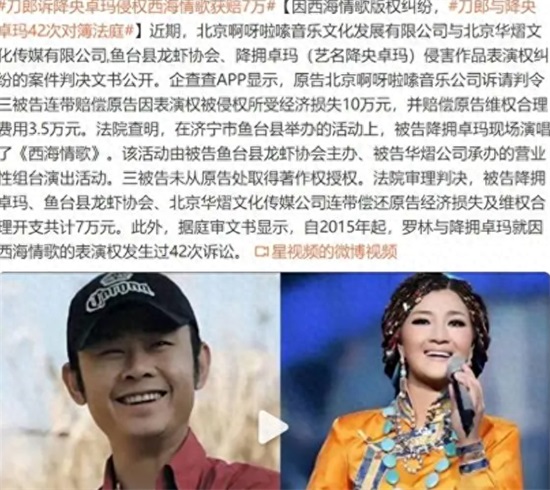 当时,事业爱情双丰收的降央卓玛,突然被刀郎给告了!