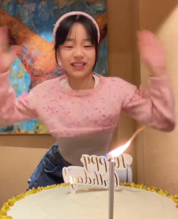 小女儿许曦恩已经长大了,露面的她在一个蛋糕面前跳起了舞蹈。镜头之中的她独享蛋糕,在插着蜡烛的蛋糕面前她显得超级可爱。