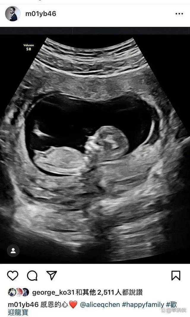 照片中,可以清晰看到胎儿的轮廓,但对于宝宝的性别,赖弘国并没有透露。