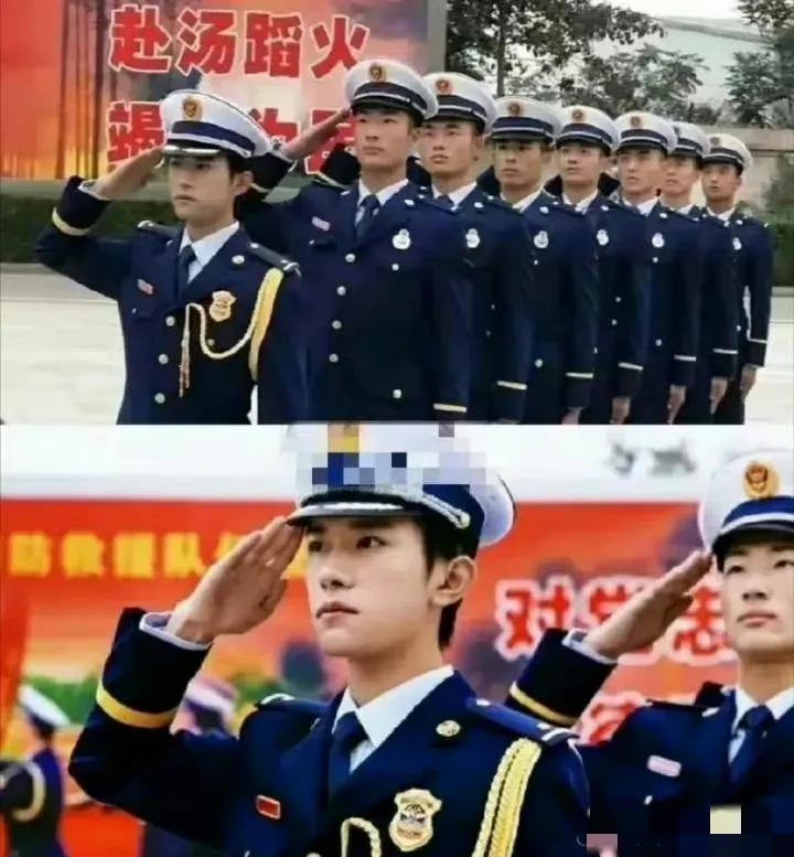 易烊千玺在一组军~队宣传照中,与正式军~人的身高对比也相当悬殊。