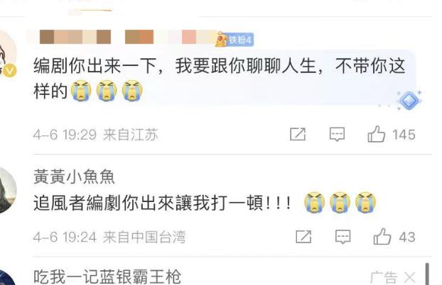 在评论区,很多观众觉得意难平,还嚷嚷着要给编剧寄刀片了。