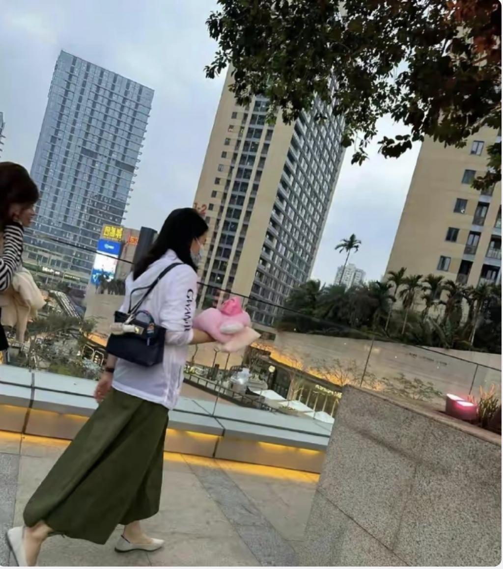 还踩着一双低跟的小皮鞋,很随意的装扮,哪怕是戴着口罩,也被眼尖的网友们认出来了。