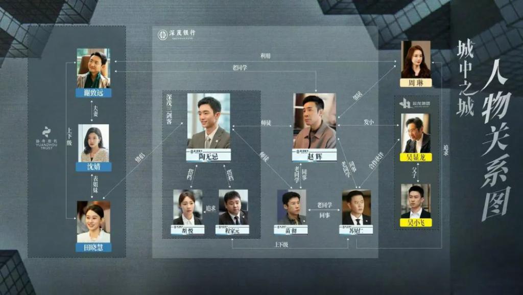 在《城中之城》里,于和伟饰演的赵辉,是支行副行长。跟王骁饰演的审计负责人苗彻,既是同学关系也是同事。