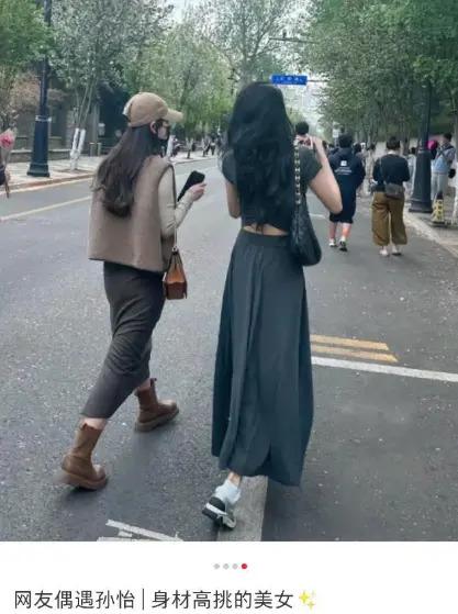 据悉,13 日下午,有多位网友在天津街头偶遇孙怡,称赞其是 " 身材高挑的美女 "。孙怡当天是和闺蜜一起逛街,两人并肩走着,边走边聊,看上去十分悠闲。