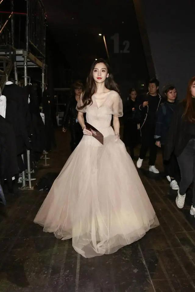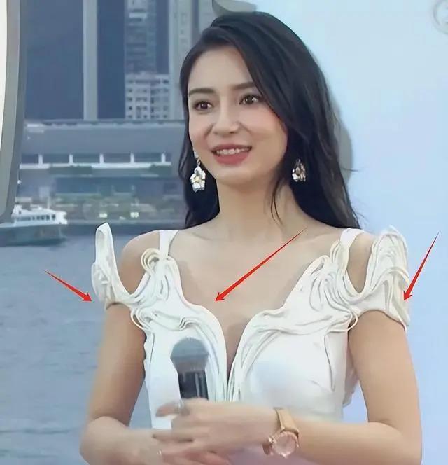 杨颖一袭白色礼服出现在红毯上,乍一看,很惊艳,但是仔细一看,就会发现这件礼服是过季的衣服。