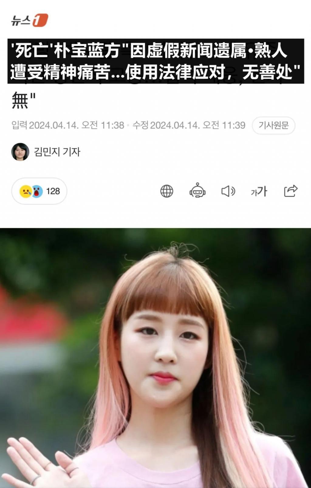 根据经纪公司的官方立场,朴宝蓝从出道开始就因未确认的事实等原因受到恶意评论的折磨,直至去世依旧承受着虚假新闻和诽谤的迫害,该行为是与杀死死者两次没有差别的行为,希望大家不要再对度过艰难时期的遗属及熟人造成伤害。