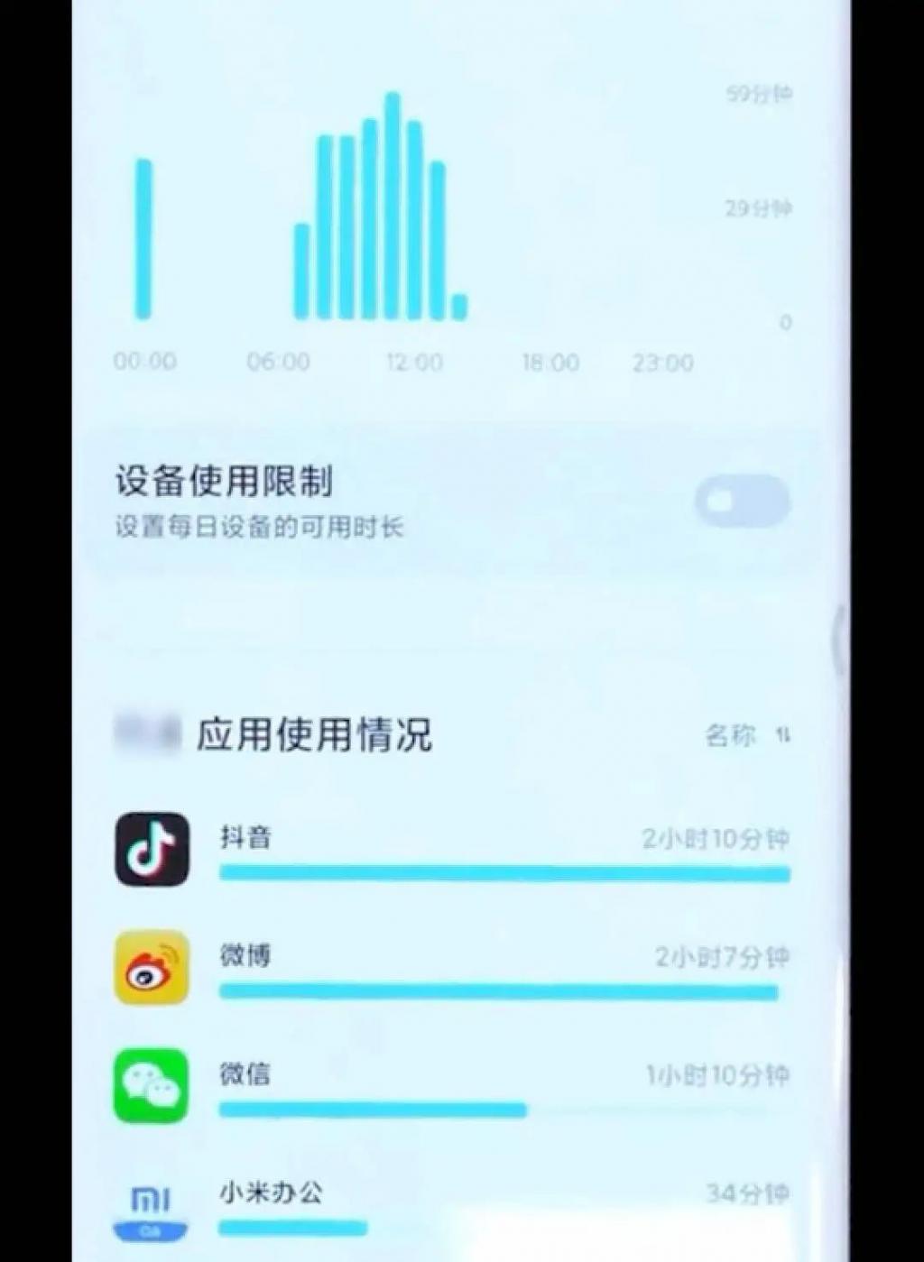 但打开后台,抖音和微博高居榜首,反而 " 小米办公 " 一天只有几十分钟。