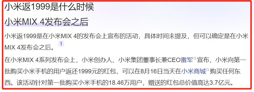 之前,他还给第一批购买小米手机的 18 万多用户,每人返了 1999 元现金红包(第一批买小米汽车的可以蹲蹲了)。