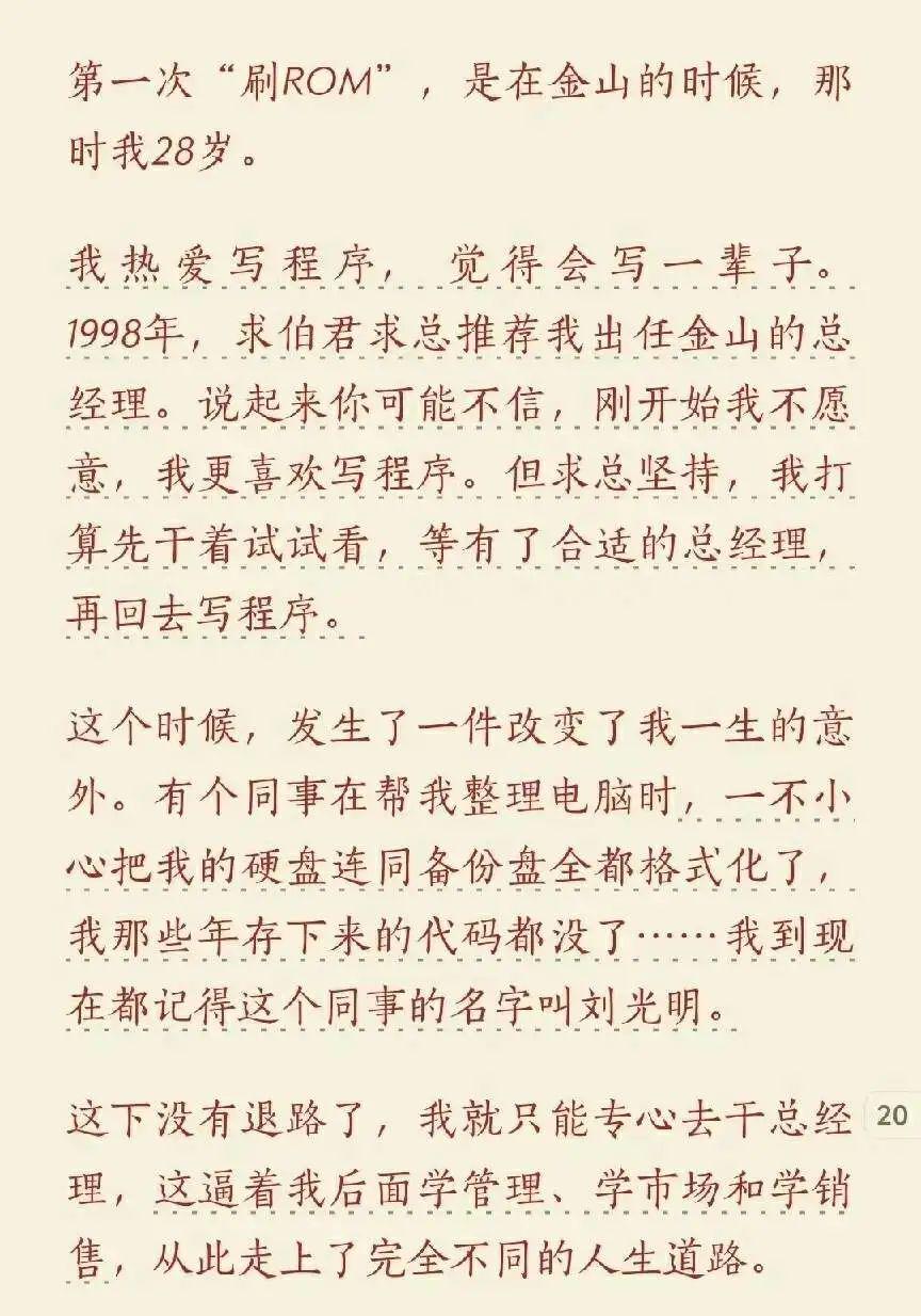 据说雷军一开始还很不情愿,只想写自己诗一样美的代码。