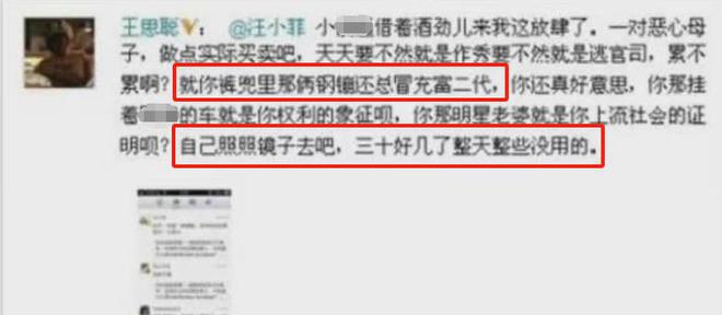 曾几何时,王思聪还公开发文怒怼汪小菲,嘲讽他用裤兜里俩钢镚冒充富二代,娶了个明星老婆就自认上流社会,让汪小菲好好照照镜子,三十几岁了整天整些没用的。