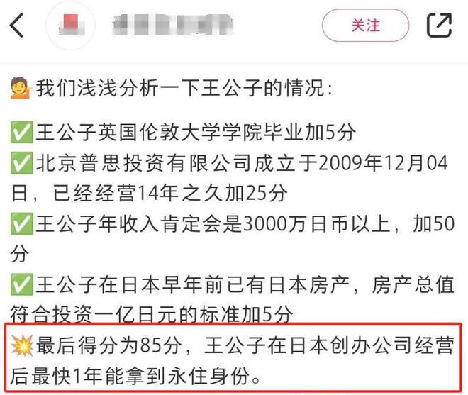 还有年收入、日本房产等加分标准,王思聪全部符合,他如果想要获得日本身份,只要随便创建个公司经营一年时间就行了,所以网友都很难想象,王思聪的日本签证竟然会出问题,难不成背后有什么大家不知道的事?