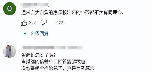 ——只见七宝妈儿子语气十分不屑,强调自己那么聪明,怎么可能上资源班,七宝妈不仅不制止儿子,还接话故意问儿子班里有没有人上资源班,得到否定的回答之后,七宝妈哈哈大笑,反复表示上资源班太扯了,又听到儿子嘲笑上资源班的小朋友都有问题之后,七宝妈更是笑得合不拢嘴。
