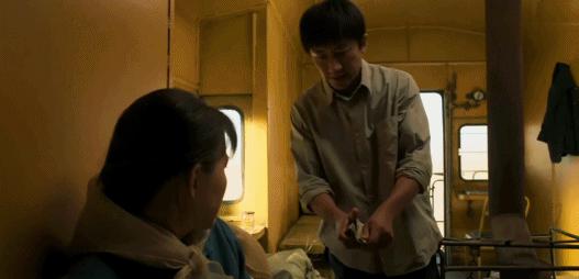 水花第一次出逃,得福搜刮身上所有钱给她,水花眼神有些惊慌,神情满是委屈和心酸。
