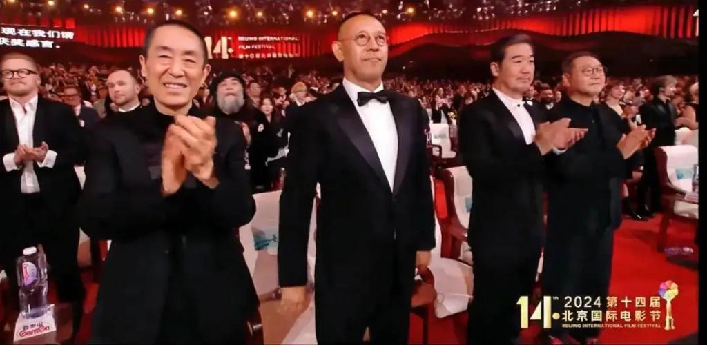 陈凯歌走上领奖台的时候,第一二排的大咖们全都站起来了,欢送他上台。