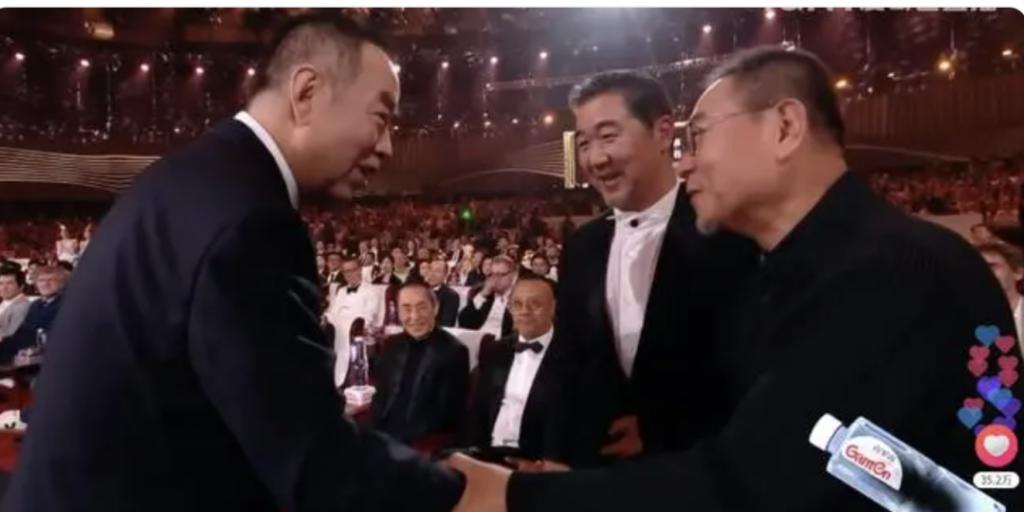 再比如和张艺谋,姜文,李雪健,张国立等人寒暄,也是同等咖位的惺惺相惜。