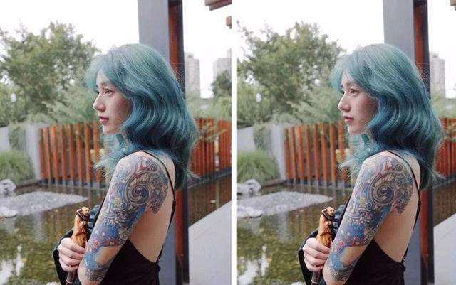 黑尾酱陈典肩膀上的纹身,肩膀到胳膊肘那个地方都是纹身。继续这个纹身是黑尾酱陈典自己设计的,并没有特定的名字。这个纹身主色调是蓝色,上面还有一些红色,黑色。以前大家总认为有纹身的女孩子都是坏女孩,不过对于黑尾酱陈典的纹身,不少,网友却表示非常的好看。