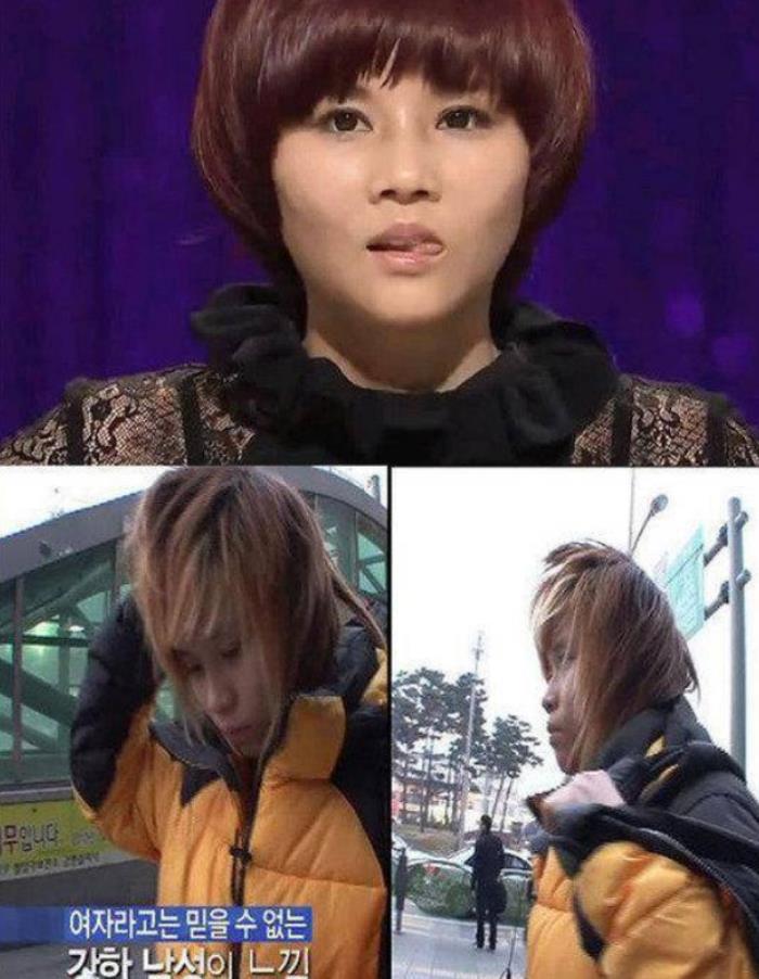 照片中的女子因为长相太像男孩子,而常常被人误认为是一个男人,经过多次整容后,变成了一个妩媚的女人。