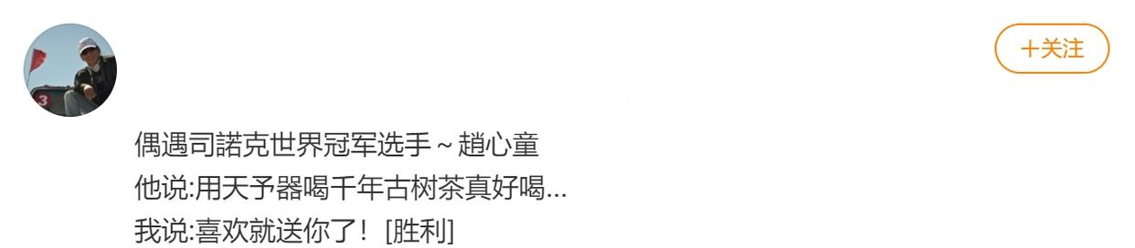 但就在近日,有网友在社交平台上爆料称:偶遇斯诺克世界冠军选手赵心童,他说:用天予器喝千年古树茶真好喝……我说:喜欢就送你了!除此之外,名叫“天予**钦莹”的网友还上传了两人一起喝茶的照片。照片中,赵心童脸上露出了久违的笑容,精神状态还算不错。对此,有球迷猜测,赵心童可能是得知了一些关于听证会的消息,否则绝不会笑得这么开心。