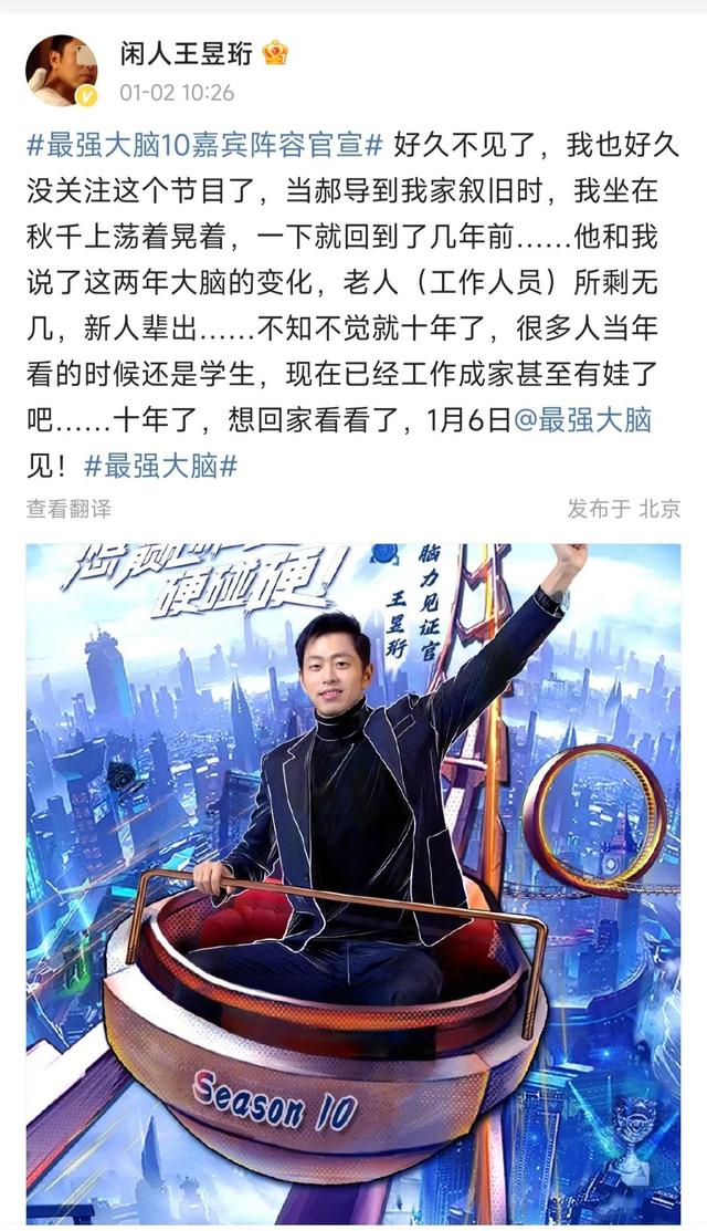 水哥最强大脑哪一期(水哥“王昱珩”官宣重返最强大脑)