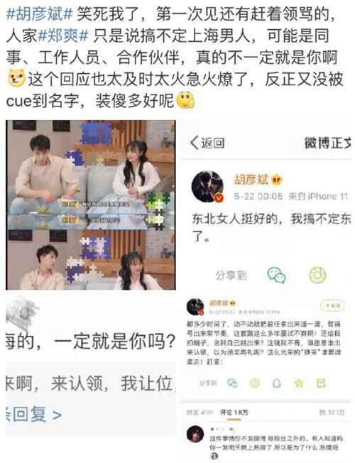 就算两人分手后,胡彦斌也经常会因为郑爽的一些事情被骂,比如一次在节目中无意的说了句我搞不定上海男人引得胡彦斌直接跳脚,连续发4条微博,并求前任以后不要在捎带自己,很多人觉得胡彦斌的反应过激了,其实想想一个长期因为前任被网暴的人,又有谁能一直保持淡定呢?