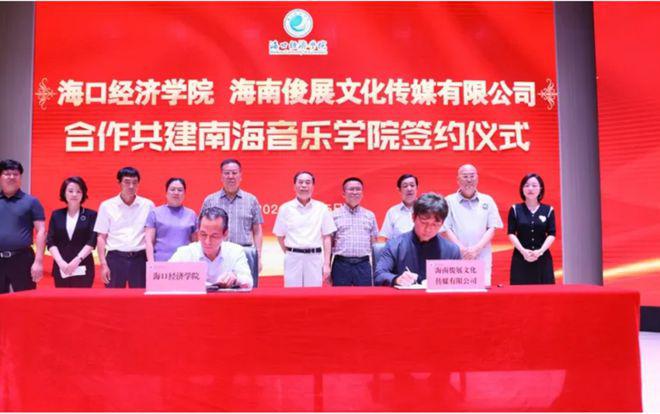 据南海音乐学院公众号发布的文章,5 月 15 日上午,海口经济学院在行政楼会议室召开南海音乐学院理事会扩大会议,与海南俊展文化传媒有限公司在北苑电影大楼举行合作共建南海音乐学院签约仪式。