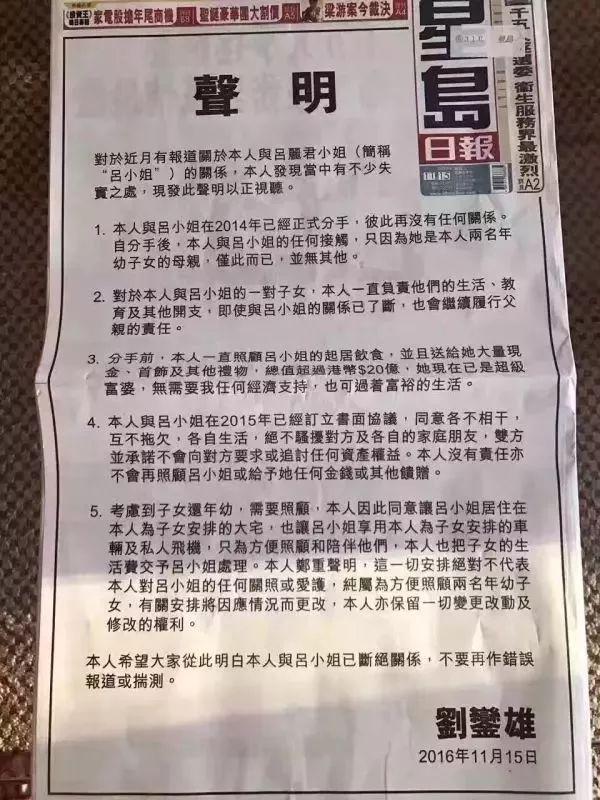 终于到了 2016 年,刘銮雄公开声明两人早在两年前就以分手,