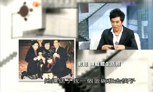 肥干妈这不就来了嘛,为此两家还正式摆酒,沈殿霞还送了陈庭威一个金碗和金筷子。