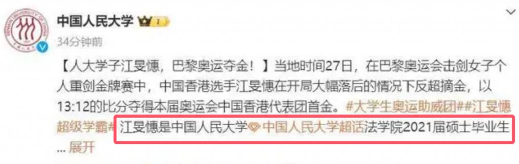 这几天,香港击剑运动员江旻憓,引发了极大的热度。
