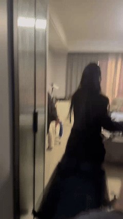 从曝光的画面中,我们可以看到视频中一位身穿黑色羽绒服的男子突然冲进自家的房子里。
