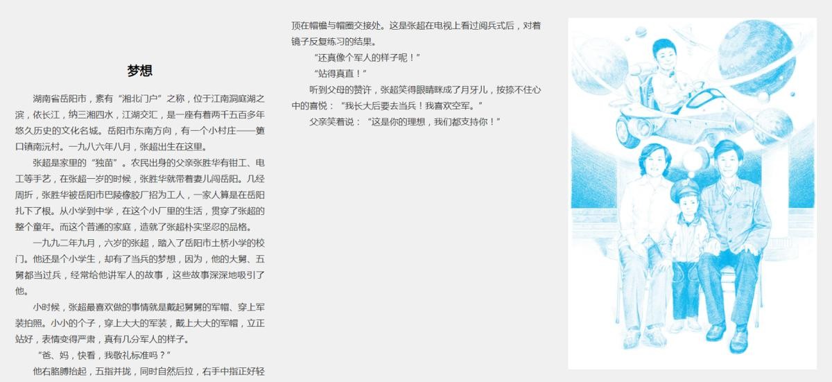 张超他既是精神丰碑,也是前进的路标,他的爱人现在还在部队工作,希望母女二人的生活越来越好。