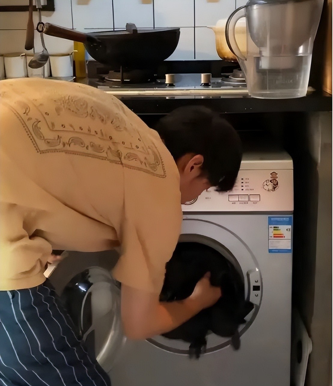 在北京高昂的物价下,外食一天就要花去近百元。为了节约开支,他挤出一个迷你厨房,灶台下还藏着一台洗衣机,真正做到了一地多用。